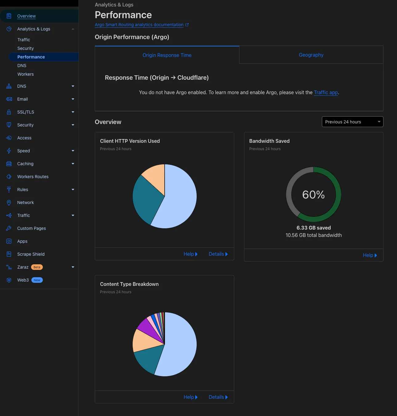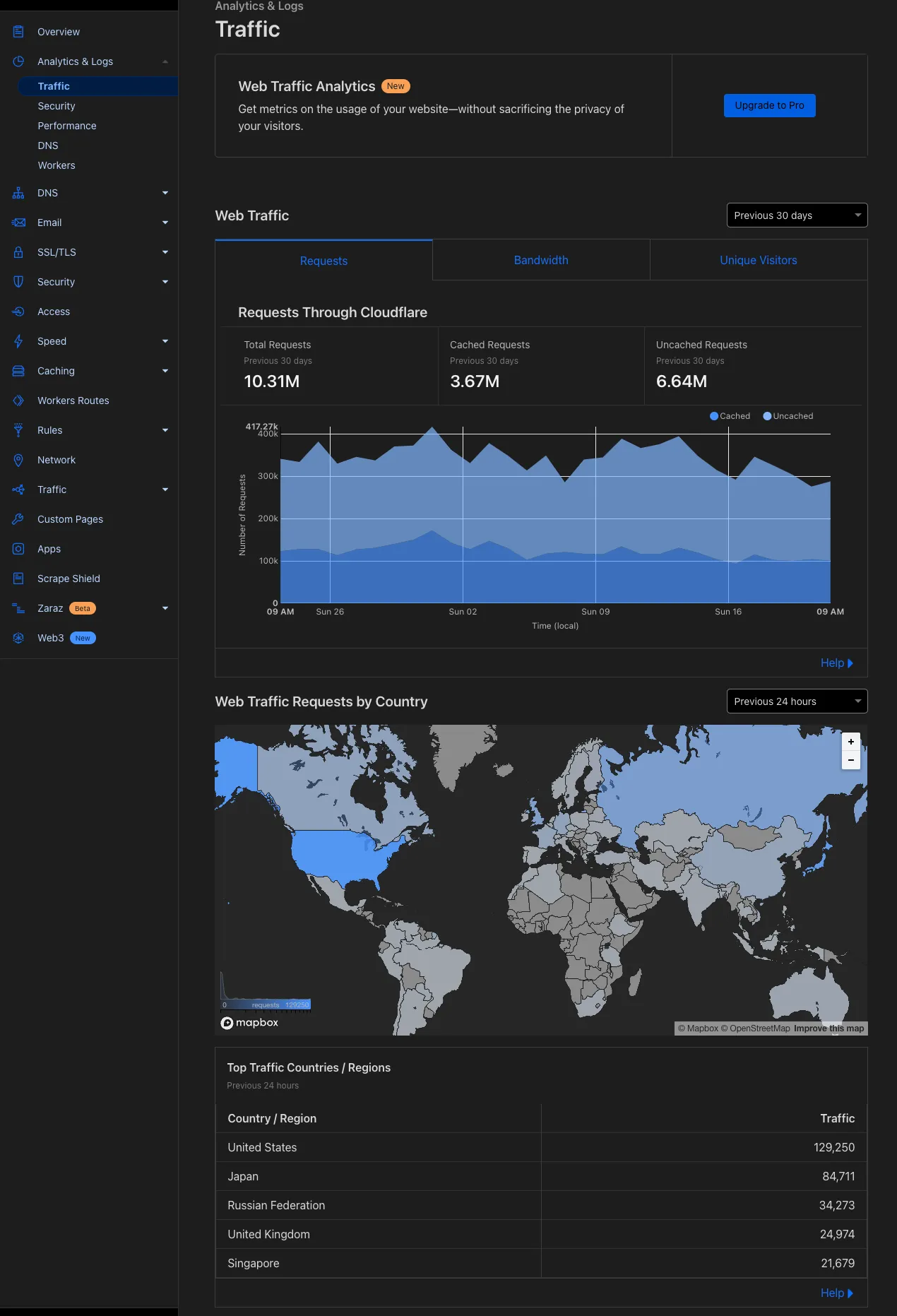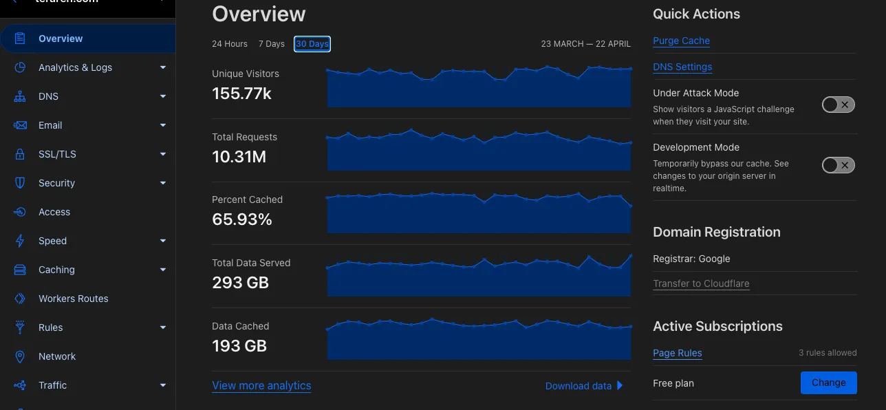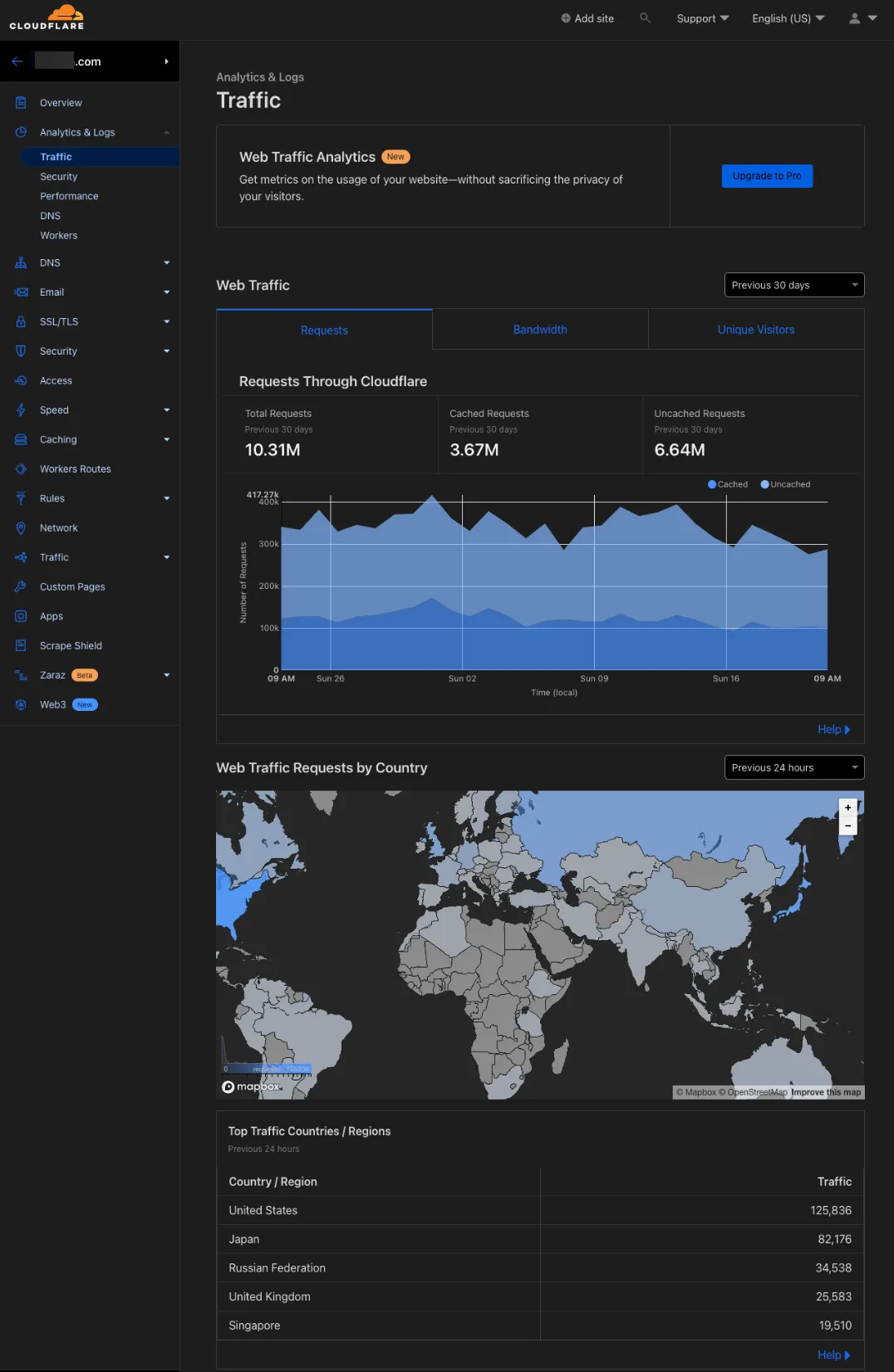 Reverse ProxyとCDNを使いだすと以下のような統計情報が表示されてきます。眺めているだけでも楽しいです。