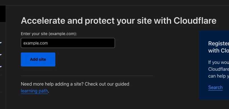 なにはともあれ、Cloudflareを使うための第1ステップはドメインのzoneを登録するところからです。