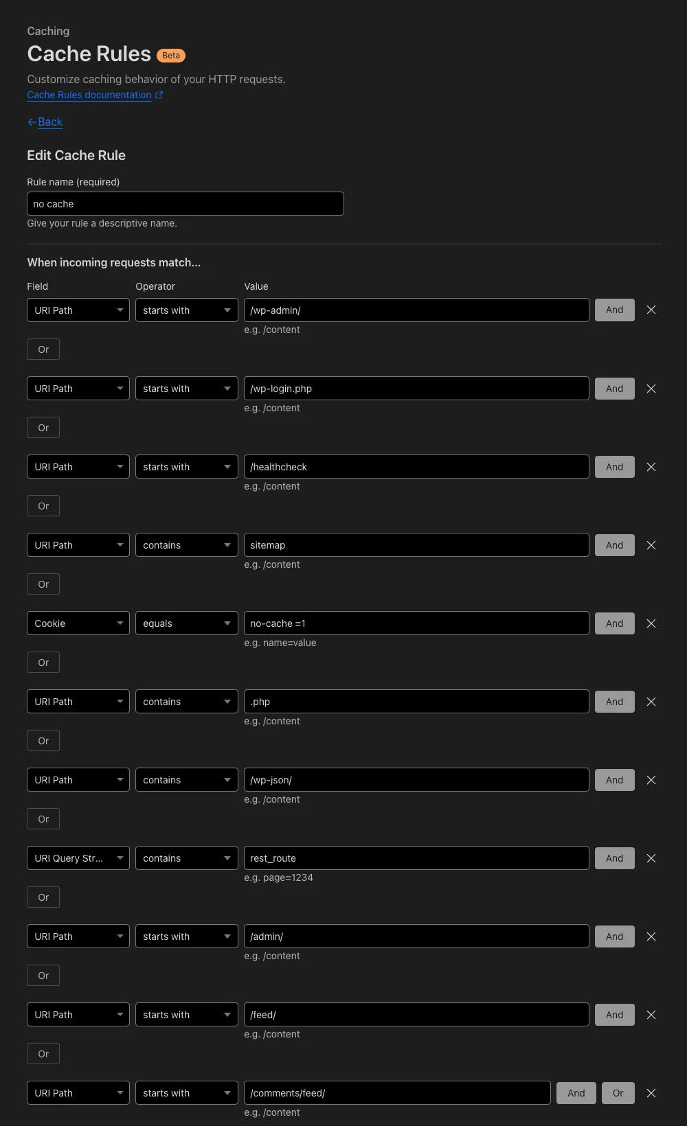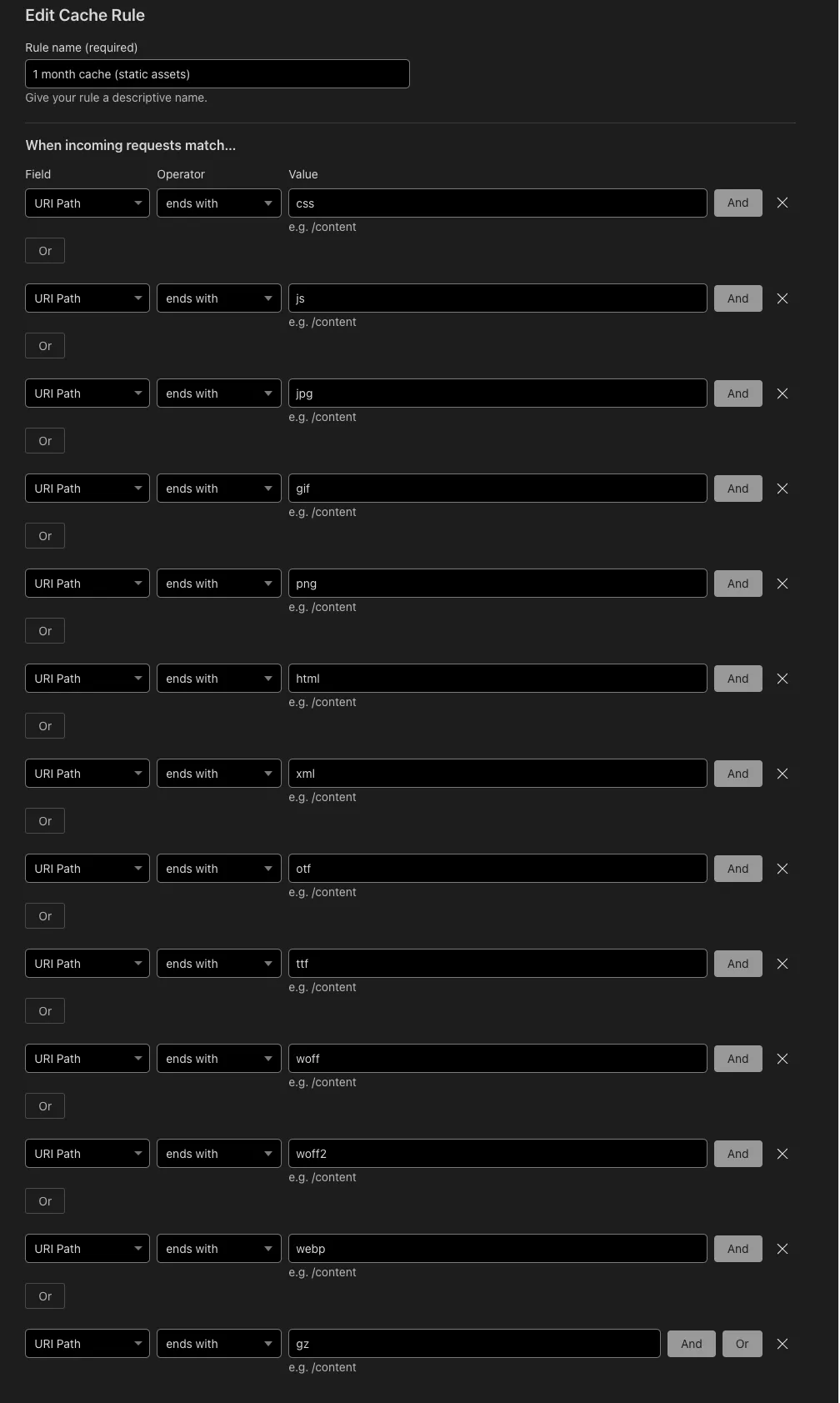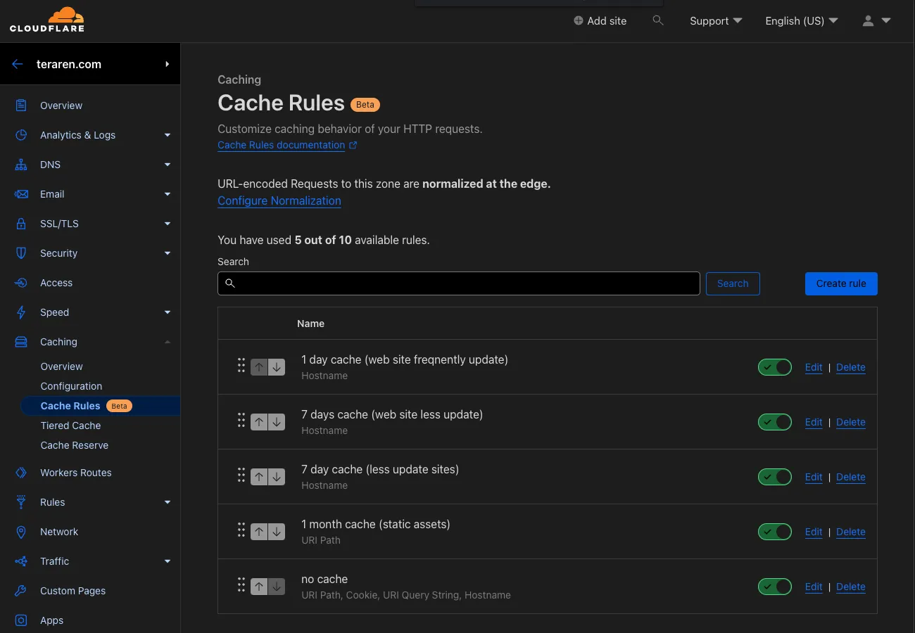 無料だと10個までしかルールセットを作れません。私はキャッシュの期間ごとにルールセットを作っています。