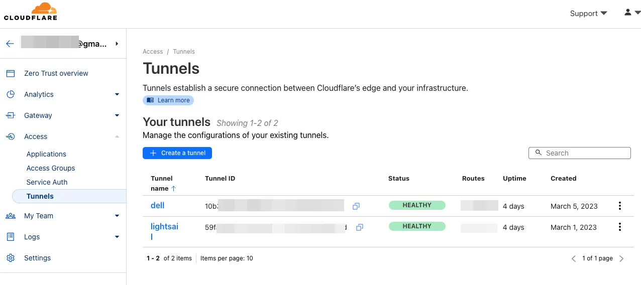 tunnelを使うためにはCloudflare上のZero Trustの管理画面で設定します。