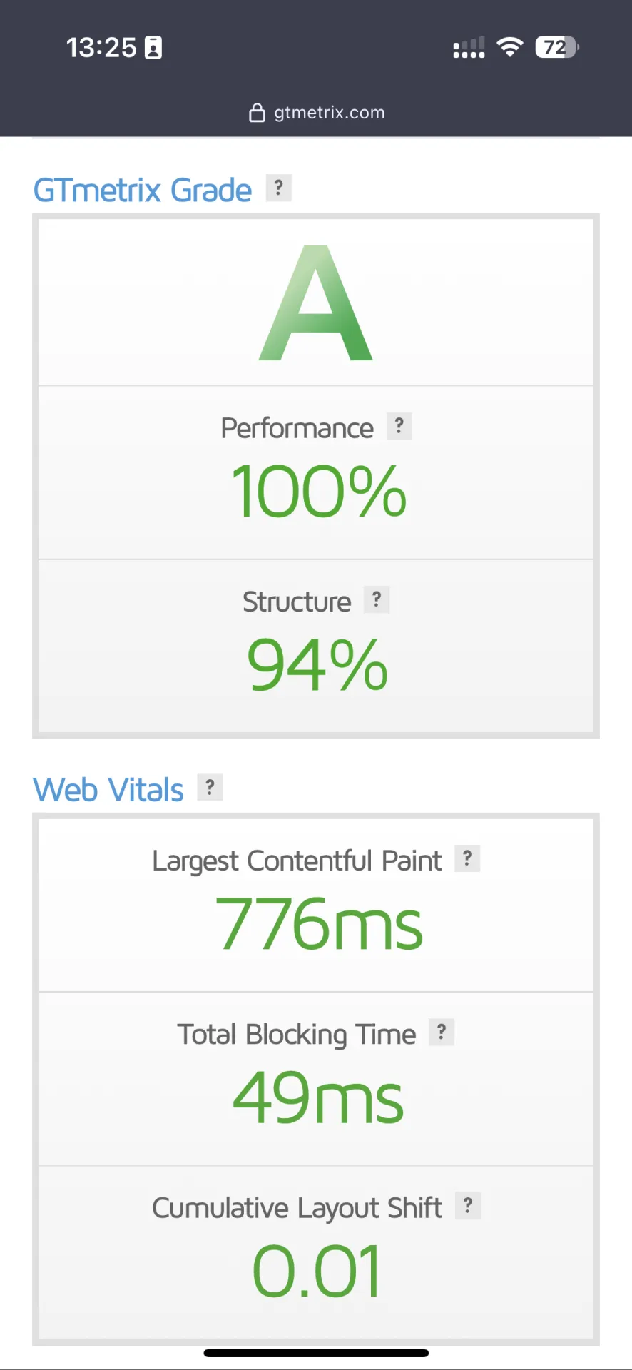 Webページのパフォーマンススコアが向上