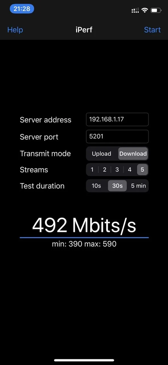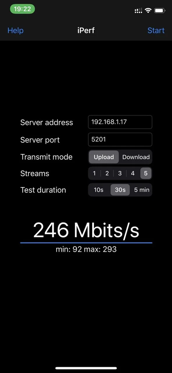 では、WiFi6対応のiPhone 11で試してみます。iperf3プロトコルに対応したiPerfというアプリを使ってベンチマークをします。