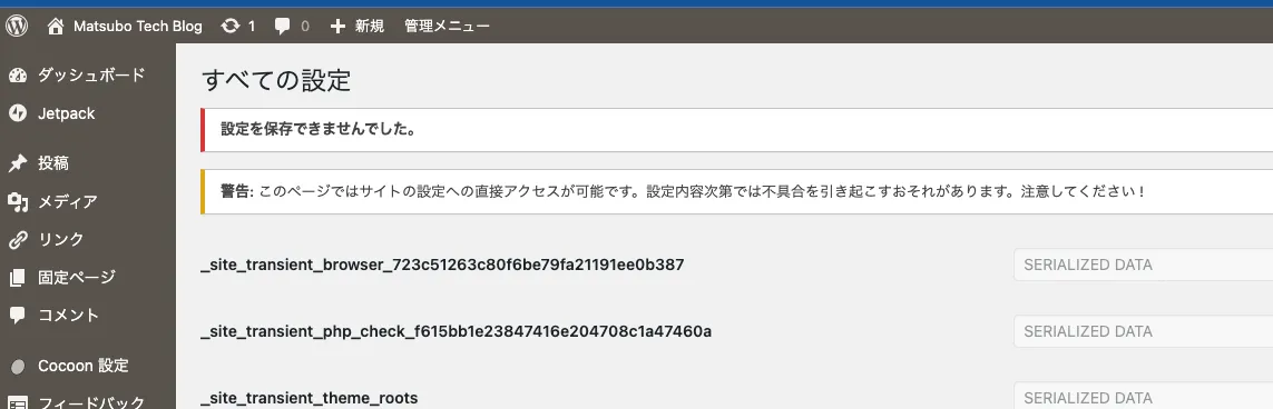 WordPressで、「options.php」ページにて、image_default_link_typeをfileに変更して、「変更を保存」をクリックすると、「設定を保存できませんでした。」と表示されて変更できませんでした。