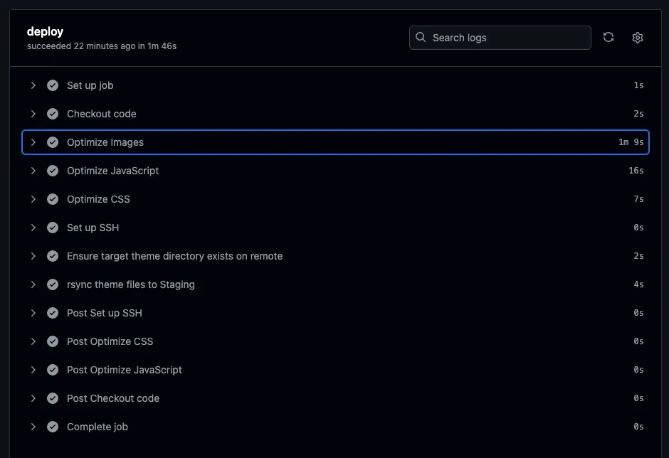 - name: Optimize CSS uses: ./.github/actions/optimize-cssこれらのステップは、deploy ステップの前に追加することを推奨します。